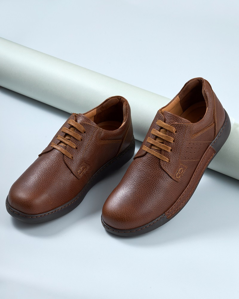 حذاء رجالي كاجول جلد طبيعي كود 1814 : الحذاء مُصنع من جلد طبيعي بقري من أجود أنواع الجلد الطبيعي ويمتاز بأنه طري وذات مسام واسعة. الحذاء ذو جودة عالية وتقفيل ممتاز. الحذاء مُبطن من الداخل بطبقة من الإسفنج لتعطي مرونة ونعومة للقدم. الحذاء مُزود برباط علشان يكون سهل في اللبس . الحذاء مُزود بفرش طبي مساج مستورد مرن ومريح جداً للوقاية من خشونة الركبة وذلك بامتصاص الصدمات عند المشي على أرضيات صلبة وتقليل الإجهاد الناتج عن الحركة والمشي.نعل الحذاء خياطة وكبس ولصق علشان يكون عملي ويتحمل في المشي. النعل مُصنع من مادة البلوريتان الخفيفة لراحة القدمين ويمتاز بأنه عازل للكهرباء حيث يناسب أصحاب المهن الحرفية.الحذاء يناسب مرضى القدم السكري ومرضى النقرس حيث يوفر لهم المرونة والراحة بأخد شكل القدم.الحذاء مناسب لأصحاب المهن التي تتطلب الوقوف لفترات طويلة حيث يوفر الحذاء الكثير من الراحة لوجود الفرش الطبي المساج أسفل الحذاء.الألوان المتوفرة : اسود - بني - هافان . المقاسات المتوفرة : 41 - 42 - 43 - 44 - 45 . وزن يبدأ من 750جم حتي 800 جم لكامل الحذاء طول النعل: 28.5سم/41 -30سم/45
